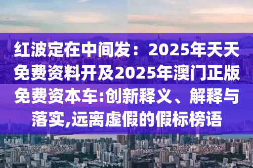 紅波定在中間發(fā):2025年天天免費(fèi)資料開及2025年澳門正版免費(fèi)資本車:創(chuàng)新釋義、解釋與落實(shí),遠(yuǎn)離虛假的假標(biāo)榜語(yǔ)