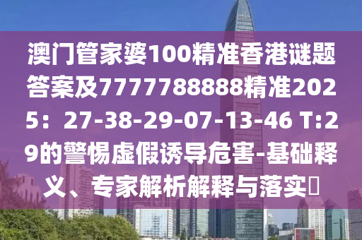 澳門管家婆100精準(zhǔn)香港謎題答案及7777788888精準(zhǔn)2025:27-38-29-07-13-46 T:29的警惕虛假誘導(dǎo)危害-基礎(chǔ)釋義、專家解析解釋與落實(shí)?