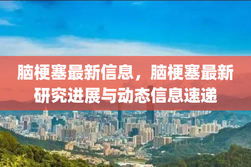 腦梗塞最新信息,腦梗塞最新研究進展與動態(tài)信息速遞