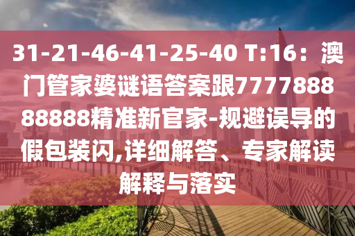 31-21-46-41-25-40 T:16:澳門管家婆謎語答案跟777788888888精準新官家:詳細解答、專家解讀解釋與落實