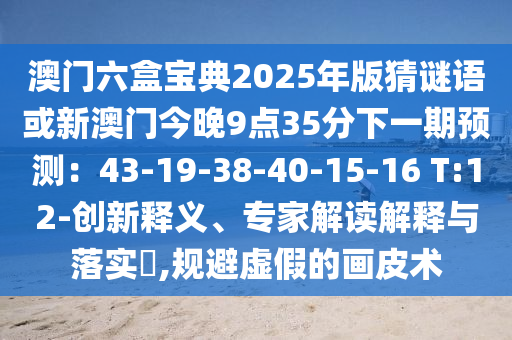 澳門六盒寶典2025年版猜謎語或新澳門今晚9點(diǎn)35分下一期預(yù)測(cè):43-19-38-40-15-16 T:12的創(chuàng)新釋義、專家解讀解釋與落實(shí)?
