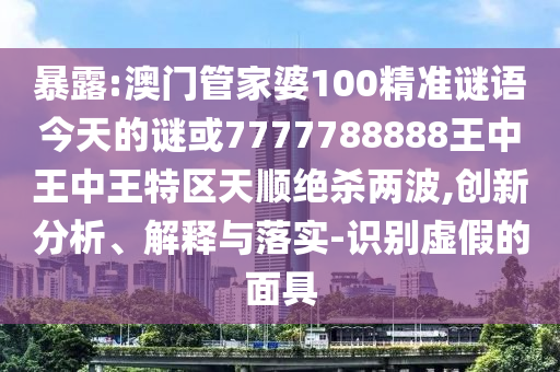 澳門管家婆100精準(zhǔn)謎語今天的謎或7777788888王中王中王特區(qū)天順絕殺兩波創(chuàng)新”的分析、解釋與落實(shí),以及識(shí)別虛假宣傳的內(nèi)容如下: