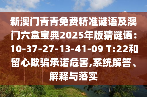 新澳門青青免費(fèi)精準(zhǔn)謎語及澳門六盒寶典2025年版猜謎語:10-37-27-13-41-09 T:22的系統(tǒng)解答、解釋與落實(shí)