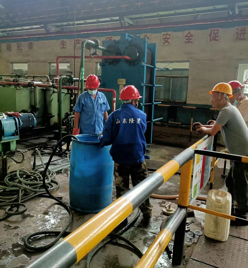 5、堿洗結束后,使用清潔的軟化水,反復對換熱器進行沖洗30分鐘后,將換熱器內的殘渣沖洗干凈;