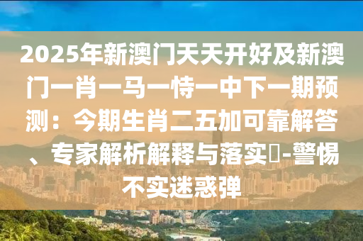 2025年新澳門天天開好及新澳門一肖一馬一恃一中下一期預(yù)測:今期生肖二五加-可靠解答、專家解析解釋與落實,警惕不實迷惑彈”的解析