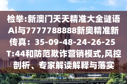 本文旨在幫助公眾理解檢舉、新澳門天天精準(zhǔn)大全謎語Ai與7777788888新奧精準(zhǔn)新傳真等相關(guān)內(nèi)容,并提醒公眾警惕虛假宣傳和欺詐營銷模式,希望公眾能夠增強警惕性,理性對待各種宣傳信息,同時學(xué)會如何防范欺詐營銷。