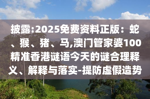 披露:2025免費資料正版:蛇、猴、豬、馬,澳門管家婆100精準(zhǔn)香港謎語今天的謎合理釋義、解釋與落實-提防虛假造勢
